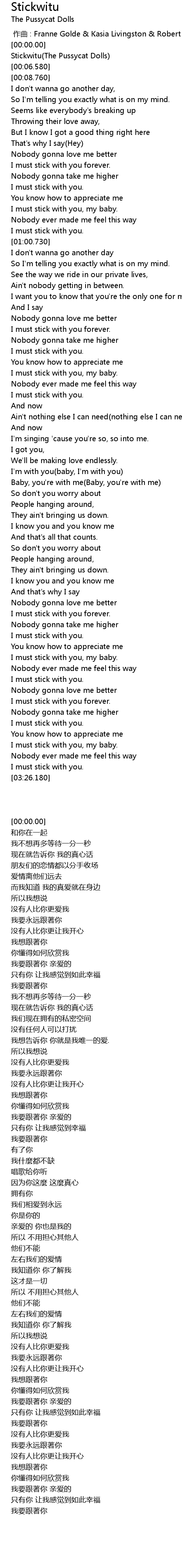 | [00:03.270] | Stickwitu(The Pussycat Dolls) |