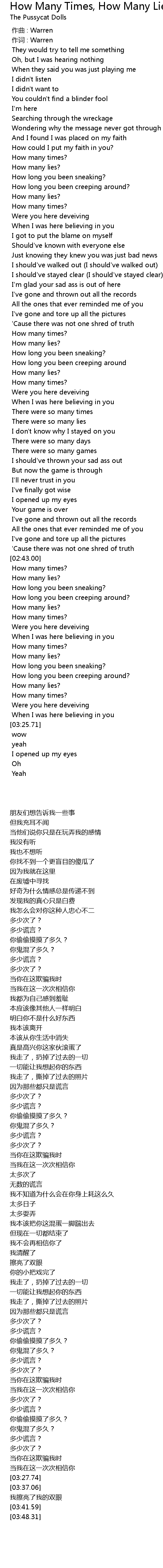 | [02:54.00] | 多少谎言? |