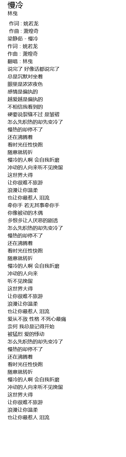 | [00:00.71] | 梁静茹 - 慢冷 |