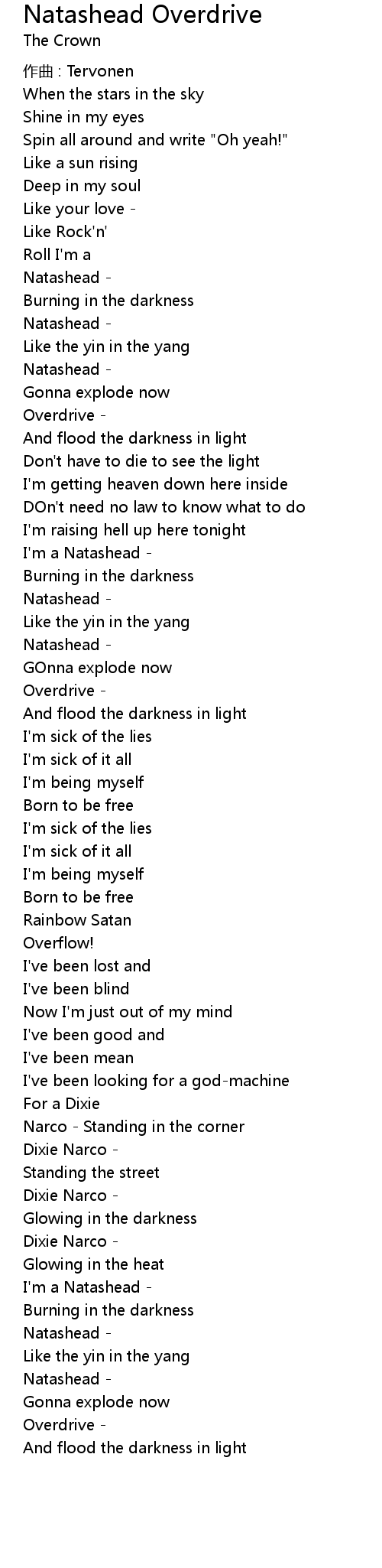 | 歌曲 | Natashead Overdrive |