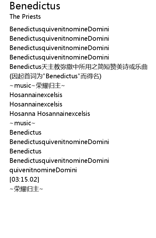 | [01:31.09] | Benedictus天主教弥撒中所用之简短赞美诗或乐曲 |