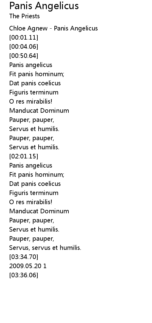 | [00:00.54] | Chloe Agnew - Panis Angelicus |