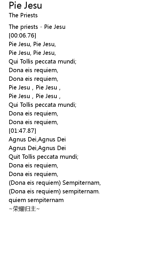 | [00:15.43] | Pie Jesu, Pie Jesu, |