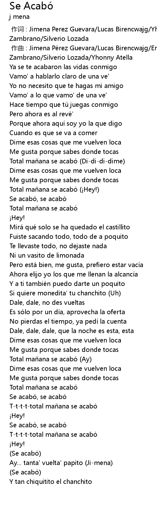 | [00:55.20] | Se acabo, se acabo |