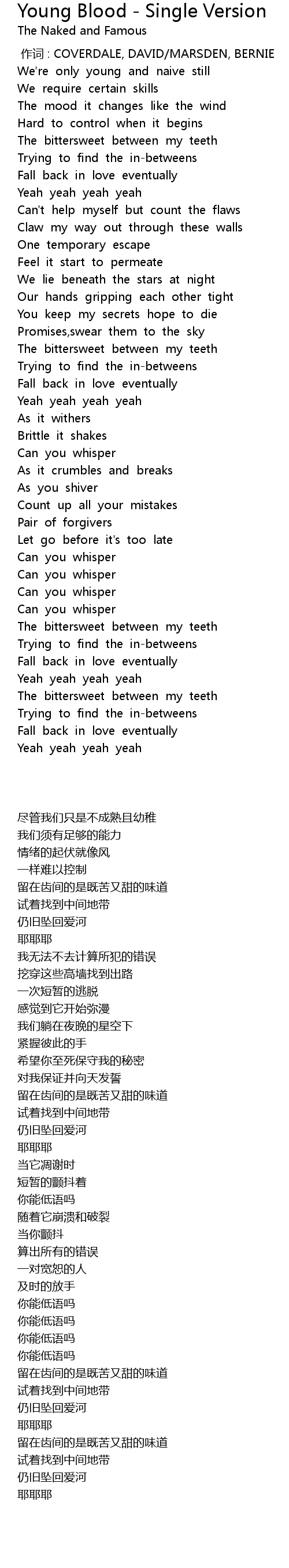 | 歌曲 | Young Blood - Single Version |