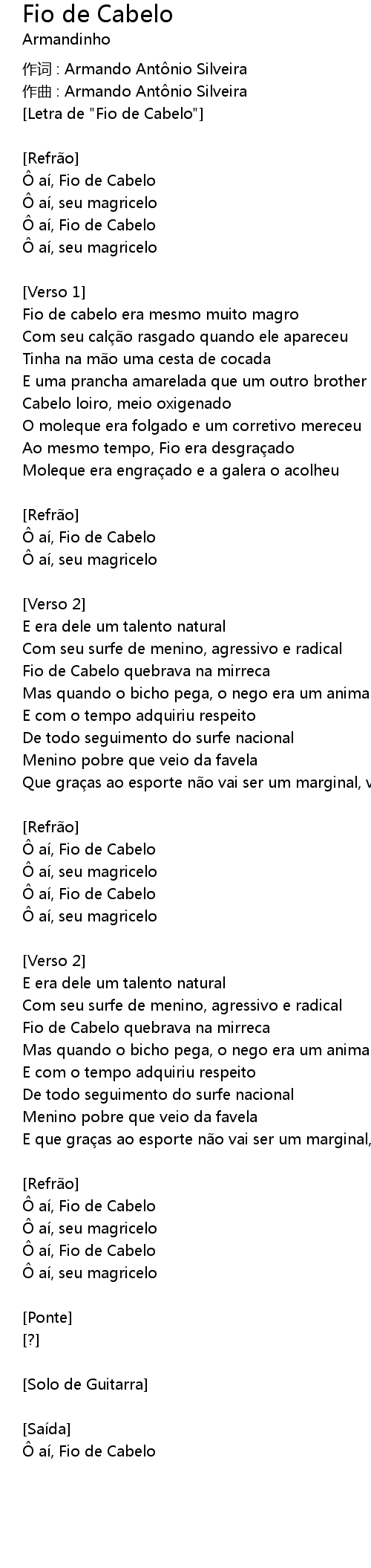| [Letra de "Fio de Cabelo"] | |