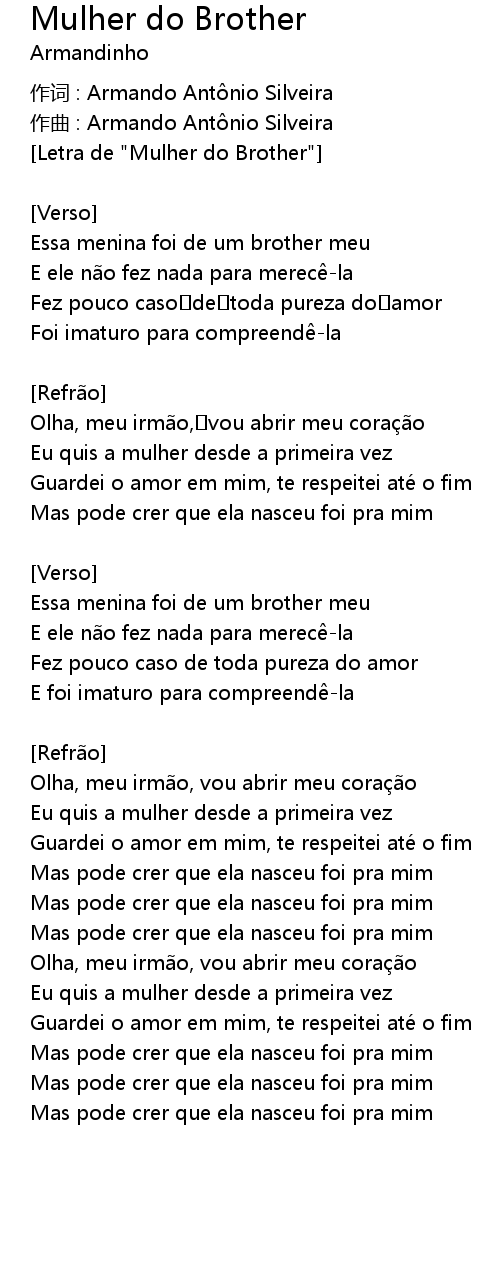 | Letra de " Mulher do Brother" | |