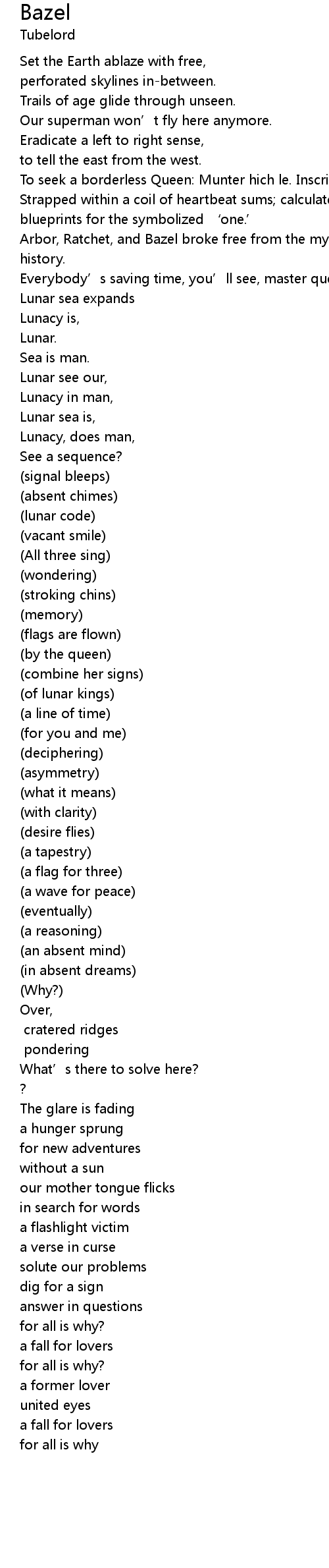 | Everybody’s saving time, you’ll see, master query: Where are your minds? | |