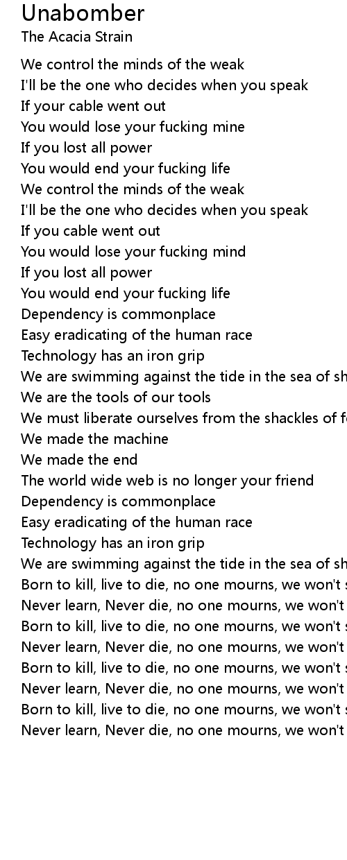 Born to kill, live to die, no one mourns, we won't survive |