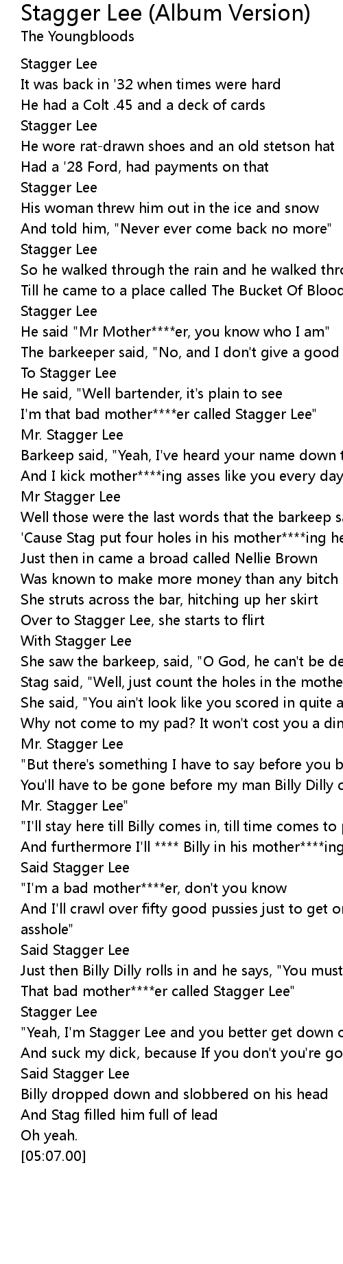 That bad mother****er called Stagger Lee" |