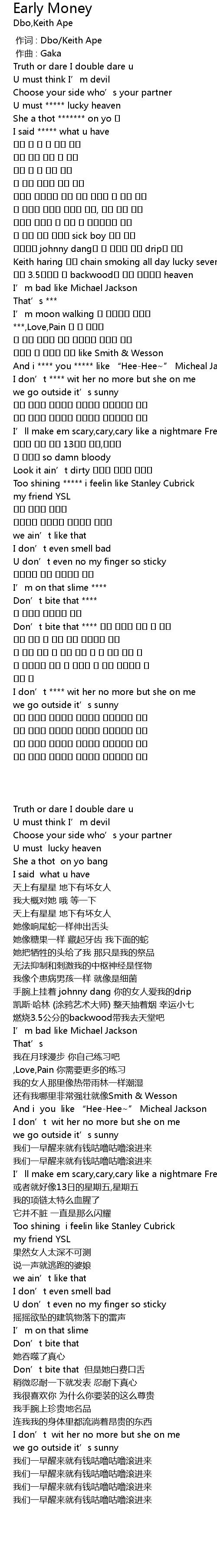 | [00:00.000] | 作词 : Dbo/Keith Ape |