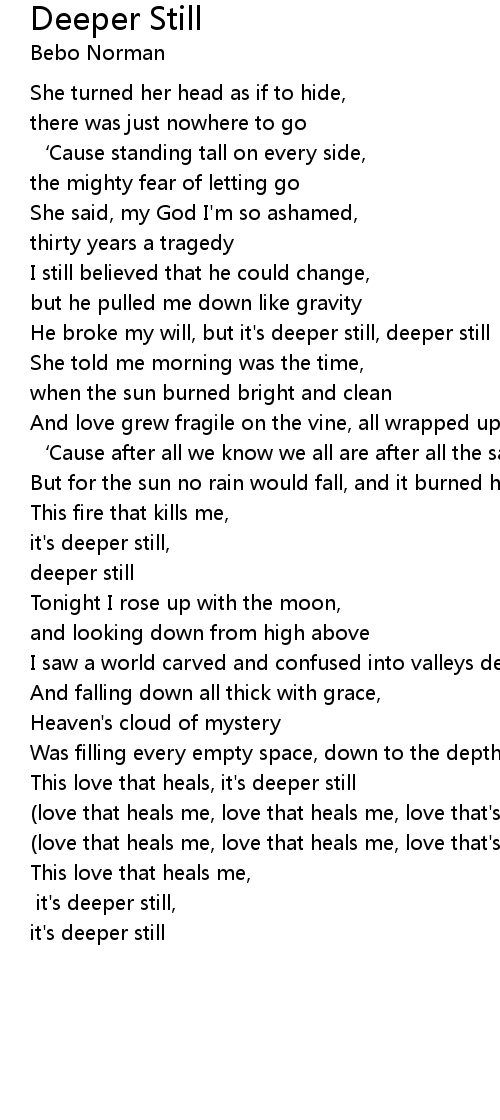 | love that heals me, love that heals me, love that' s deeper still | |
