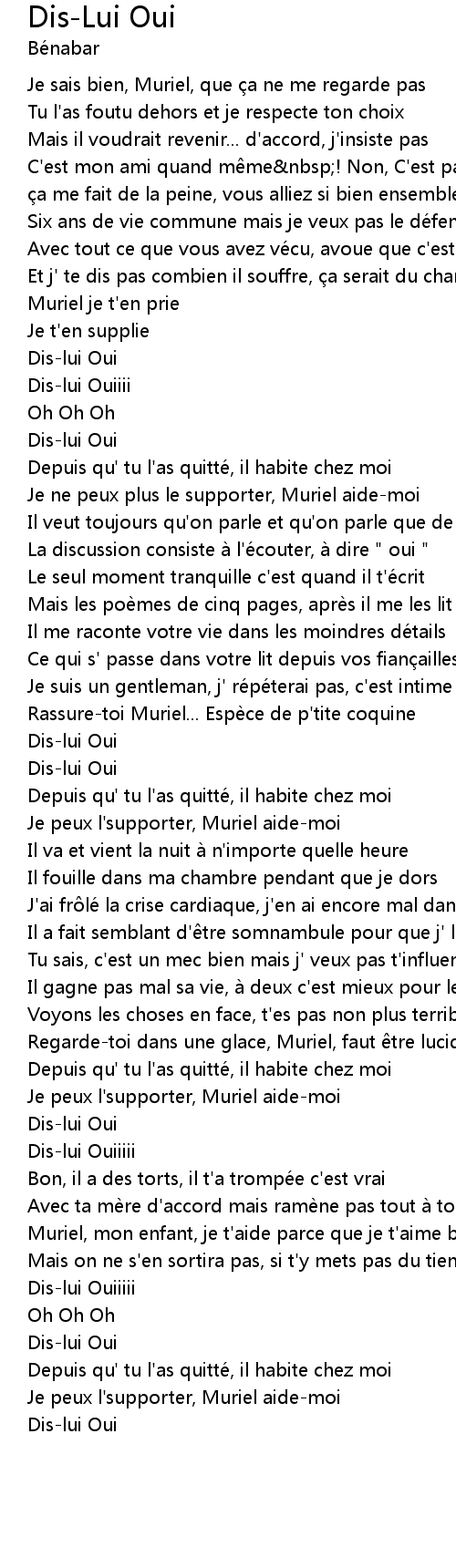 | Bon, il a des torts, il t' a trompe e c' est vrai | |