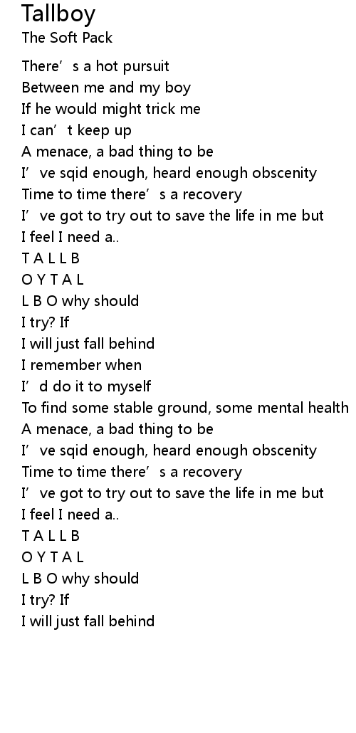 | 歌曲 | Tallboy |