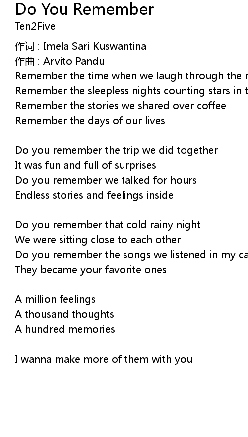 | Do you remember the songs we listened in my car | |