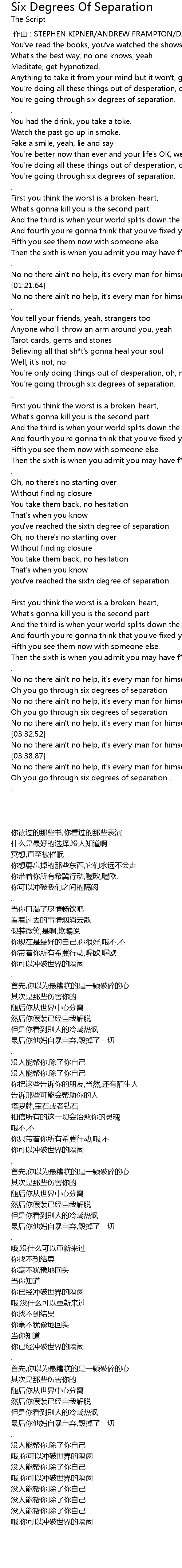 | [02:33.71] | you' ve reached the sixth degree of separation |