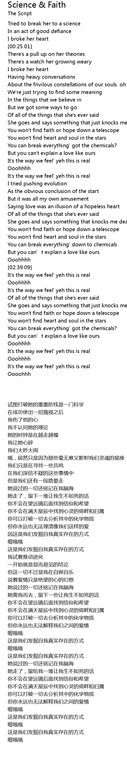 | 歌曲 | Science & Faith |