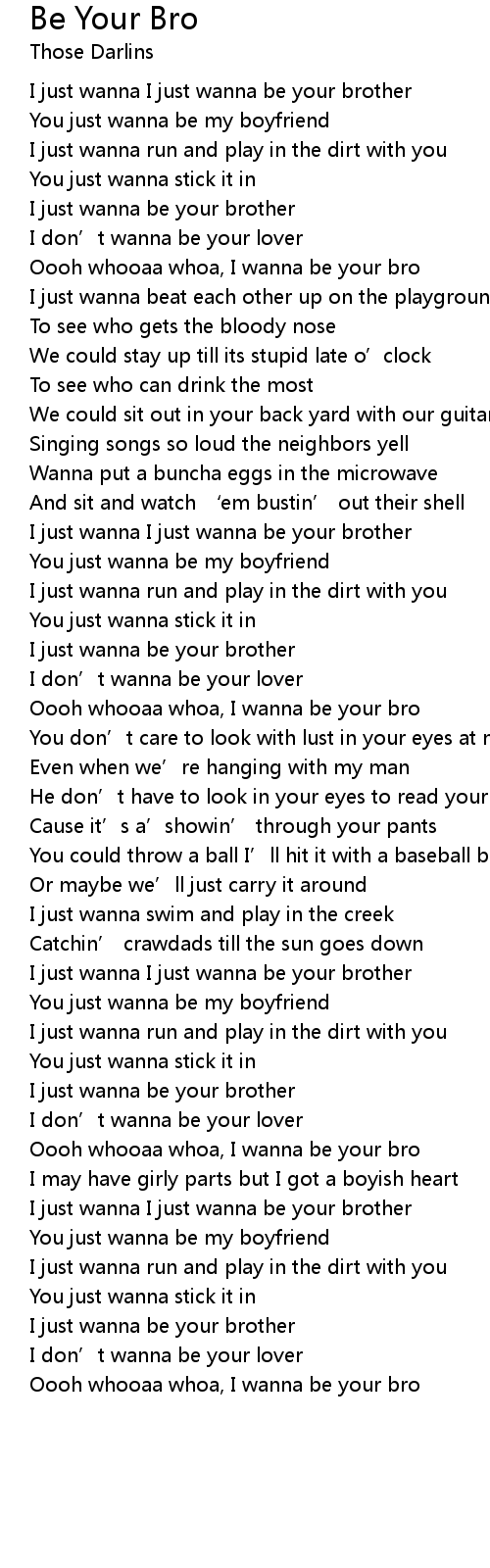 | Oooh whooaa whoa, I wanna be your bro |