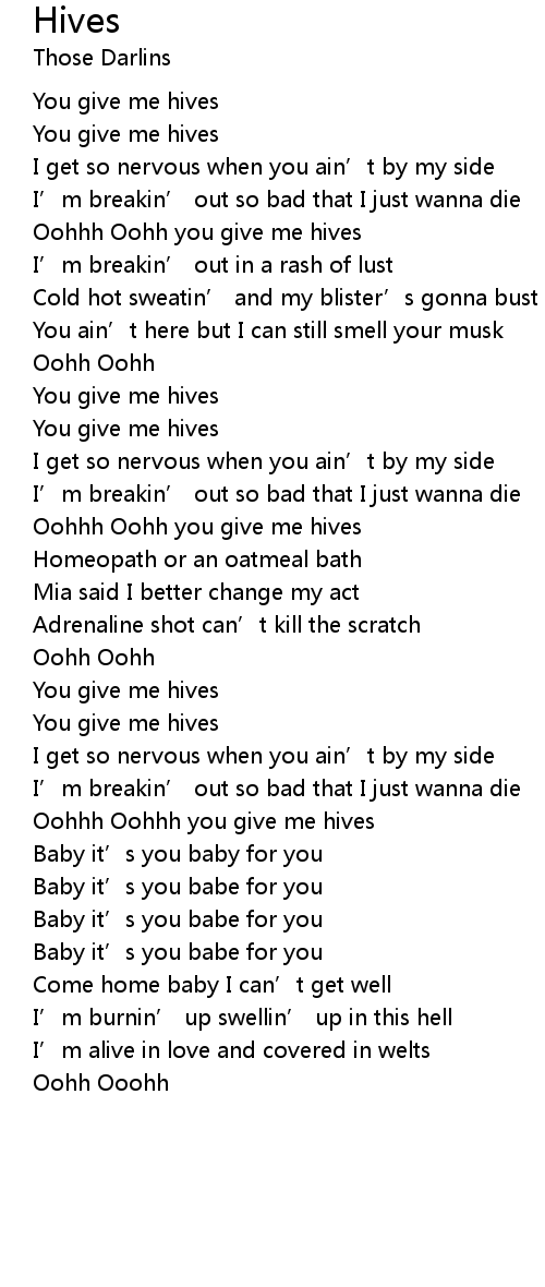 | Oohhh Oohhh you give me hives | |