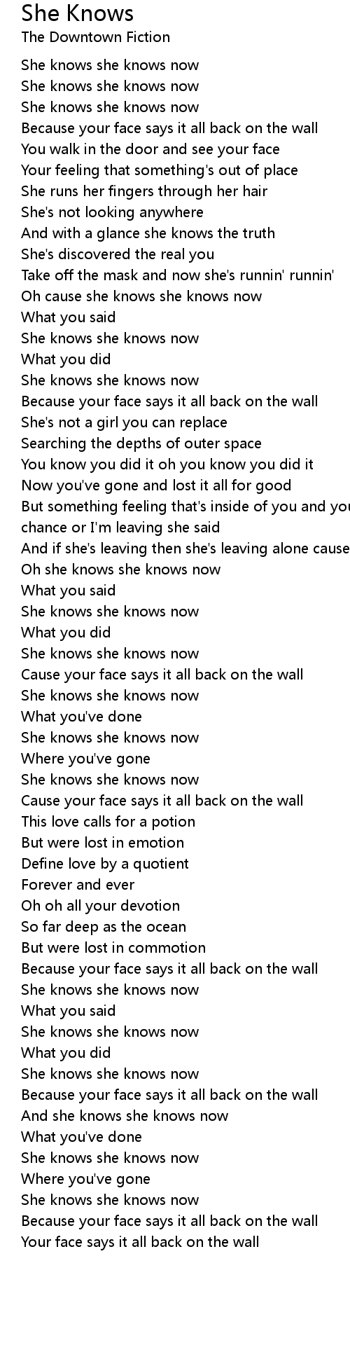 Oh cause she knows she knows now |