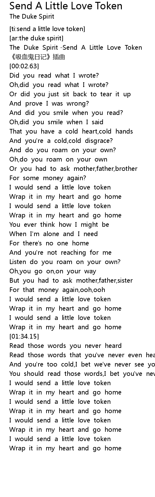 | [00:00.00] | The Duke Spirit Send A Little Love Token |