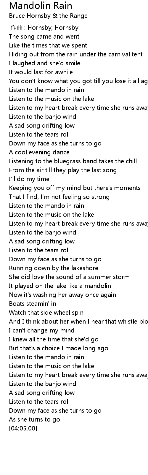 | [00:55.48] | Listen to the mandolin rain |
