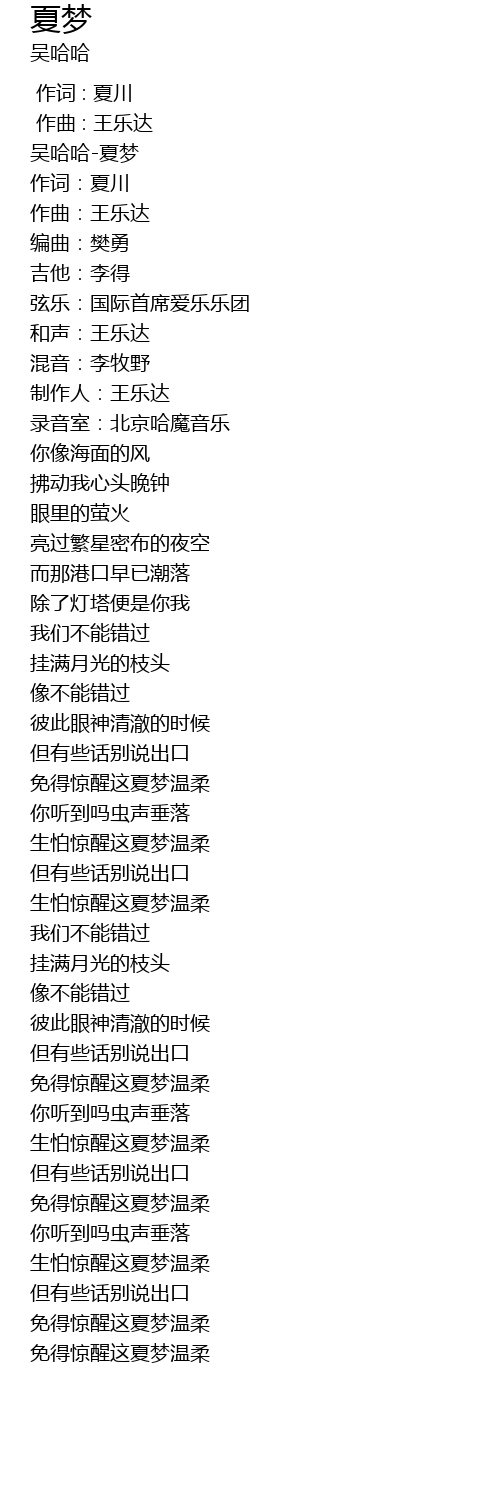 | [01:49.396] | 生怕惊醒这夏梦温柔 |