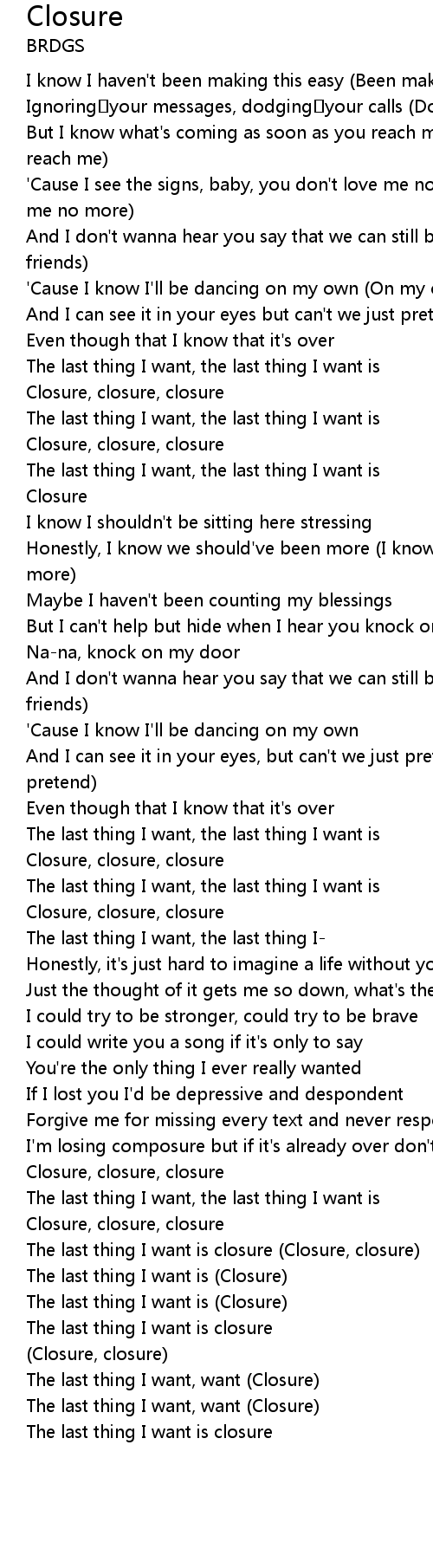 | [02:36.670] | The last thing I want is closure (Closure, closure) |