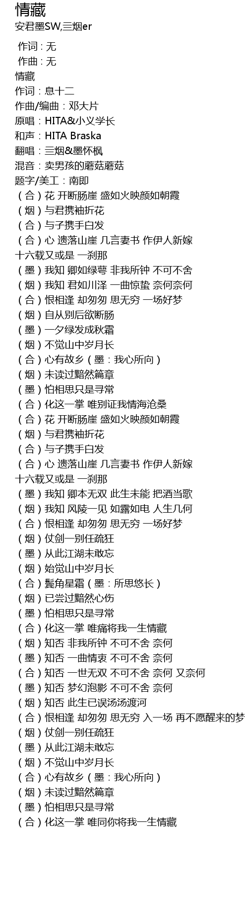 | [00:17.87] | 翻唱:亖烟&墨怀枫 |