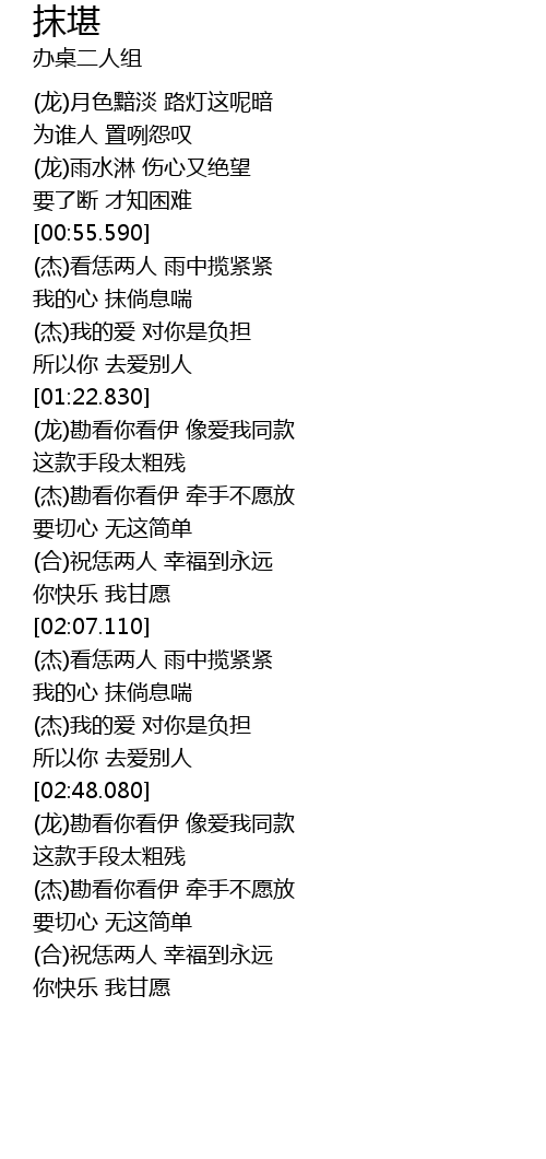 | [03:00.860] | (杰)勘看你看伊 牵手不愿放 |