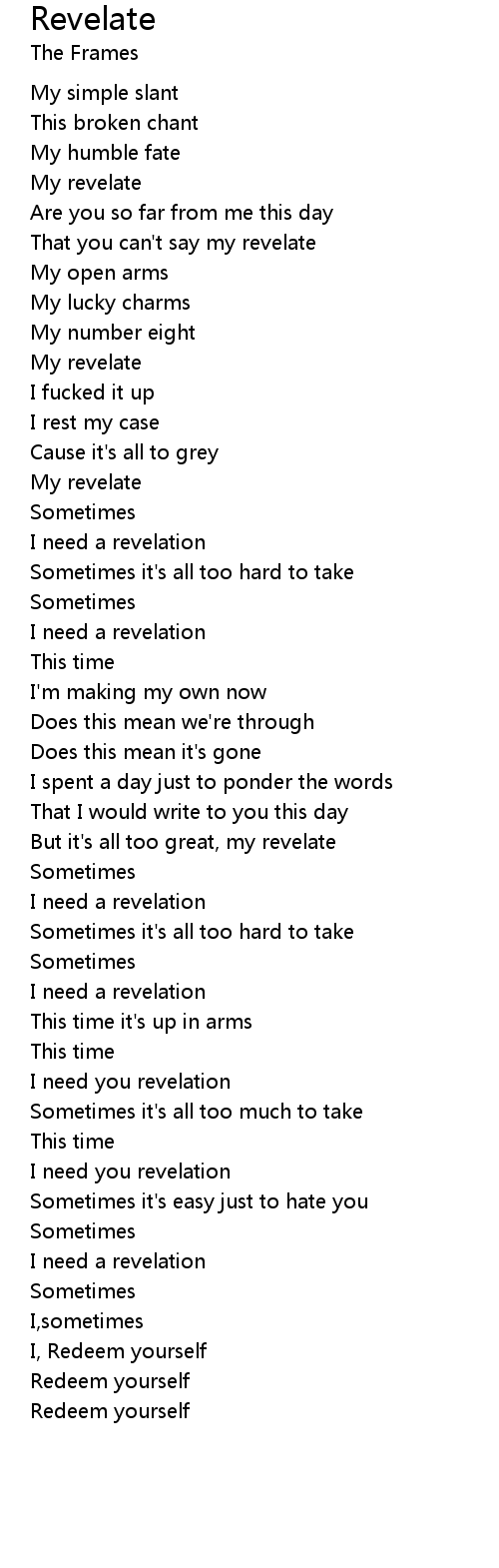 I need a revelation |
