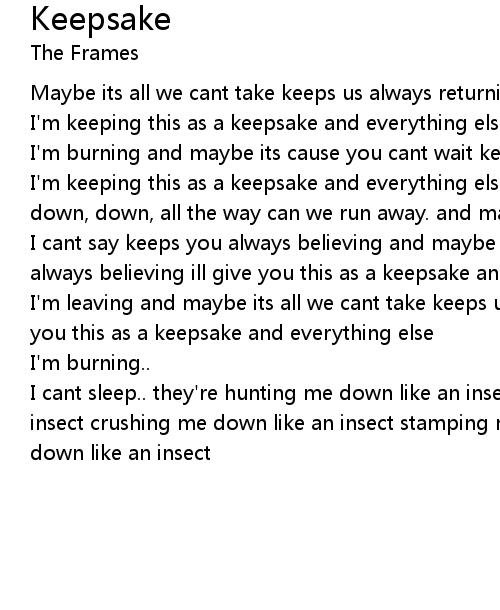 I'm keeping this as a keepsake and everything else forgetting when were down, down, down, all the way can we run away. and maybe it cause |