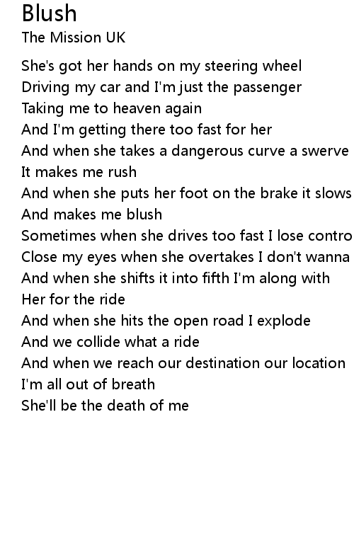 Close my eyes when she overtakes I don't wanna see a head on smash |