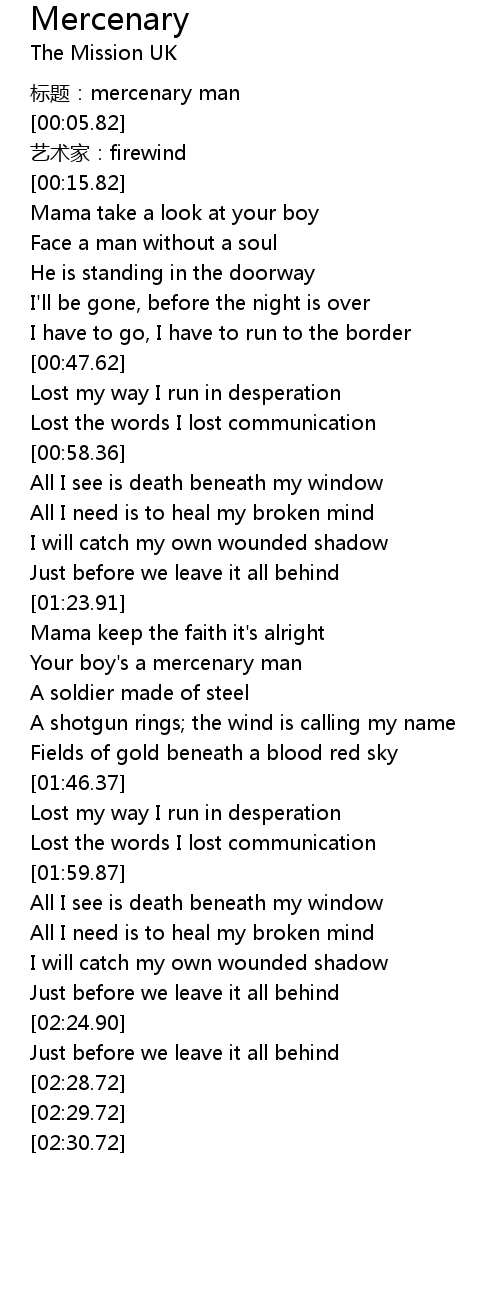| [01:42.55] | Fields of gold beneath a blood red sky |