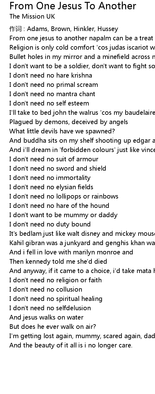 | Religion is only cold comfort ' cos judas iscariot was a cheat | |