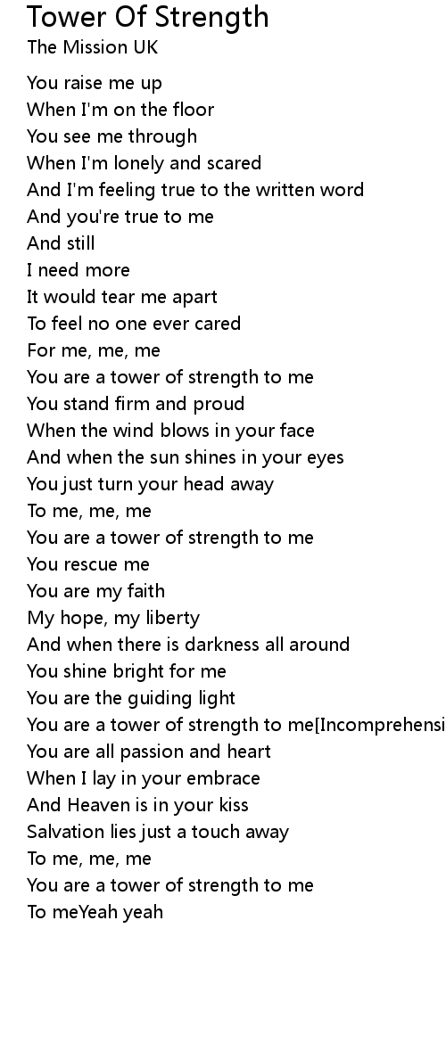 You are a tower of strength to me |