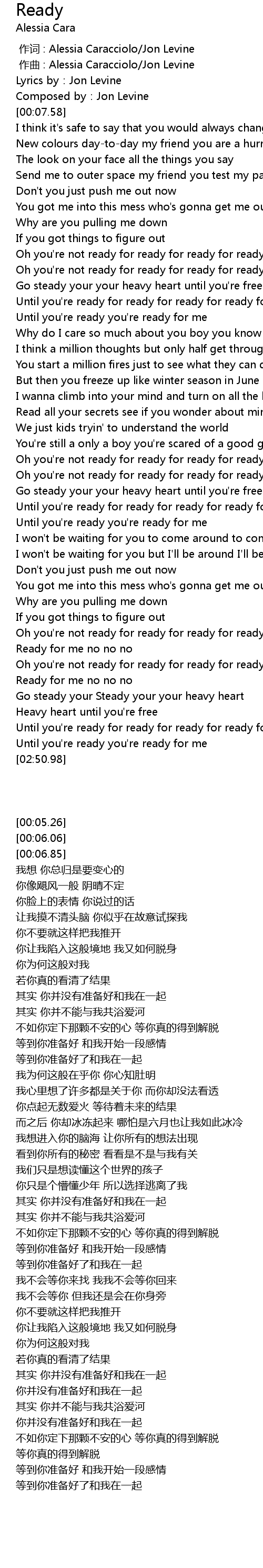 | [00:06.06] | Lyrics by: Jon Levine |