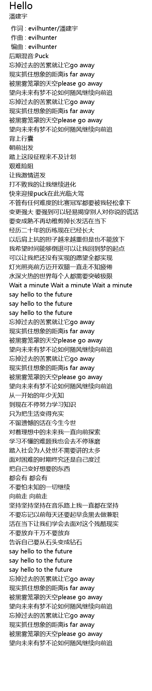 | [00:00.000] | 作词 : evilhunter/潘建宇 |