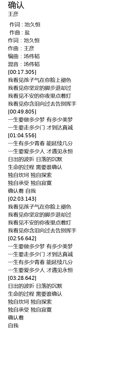 | [01:50.891] | 确认着 自我 |