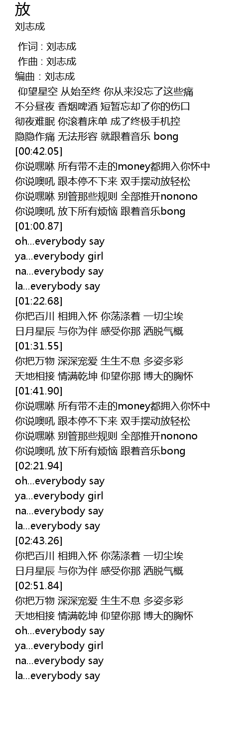 | [00:57.07] | 你说噢吼 放下所有烦恼 跟着音乐bong |