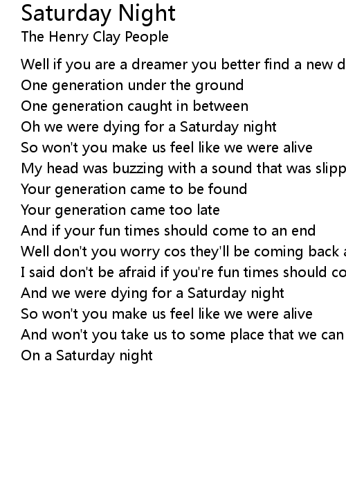 And we were dying for a Saturday night |