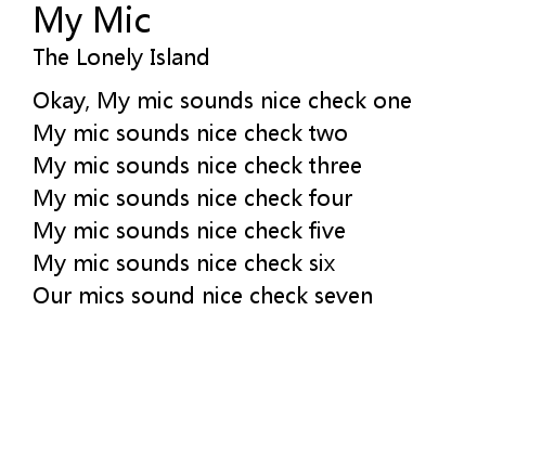 | [00:00.98] | Okay, My mic sounds nice check one |
