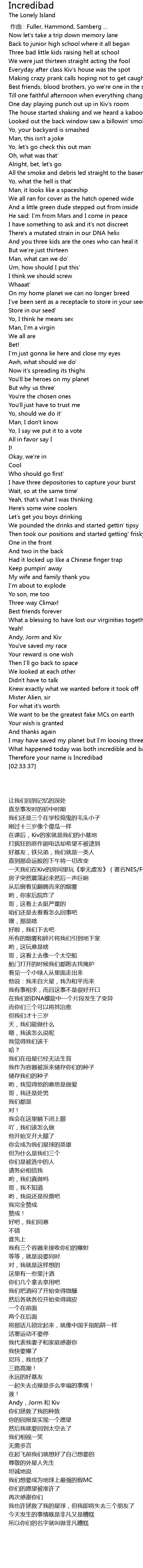 | [02:30.19] | Therefore your name is Incredibad |