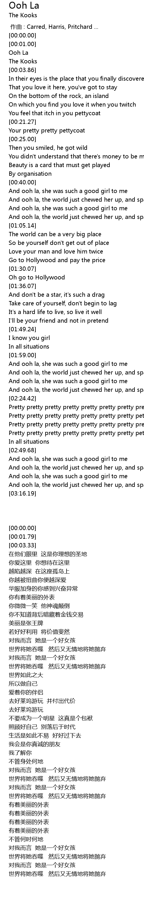 | [00:53.17] | And ooh la, she was such a good girl to me |