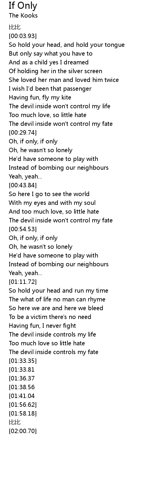 | [01:43.80][01:33.81] | Oh, if only, if only |