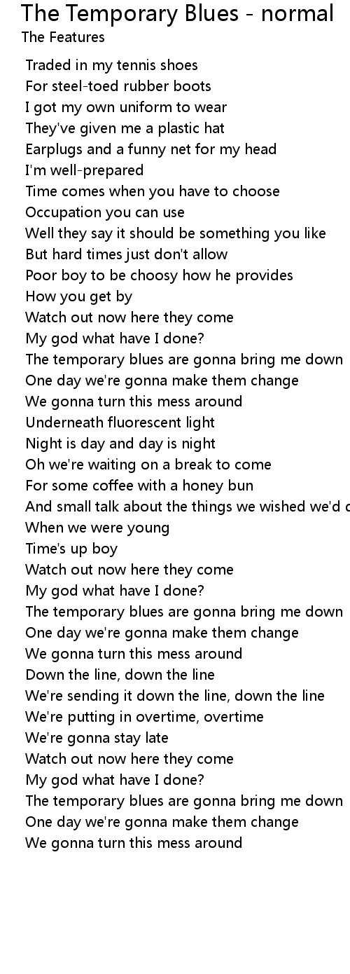 The temporary blues are gonna bring me down |