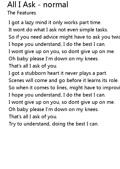 That's all I ask of you. |