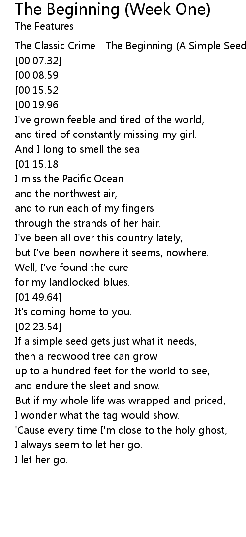 [00:01.06] The Classic Crime - The Beginning (A Simple Seed)