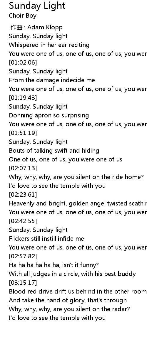 | [00:55.75] | You were one of us, one of us, one of us, you were one of us |
