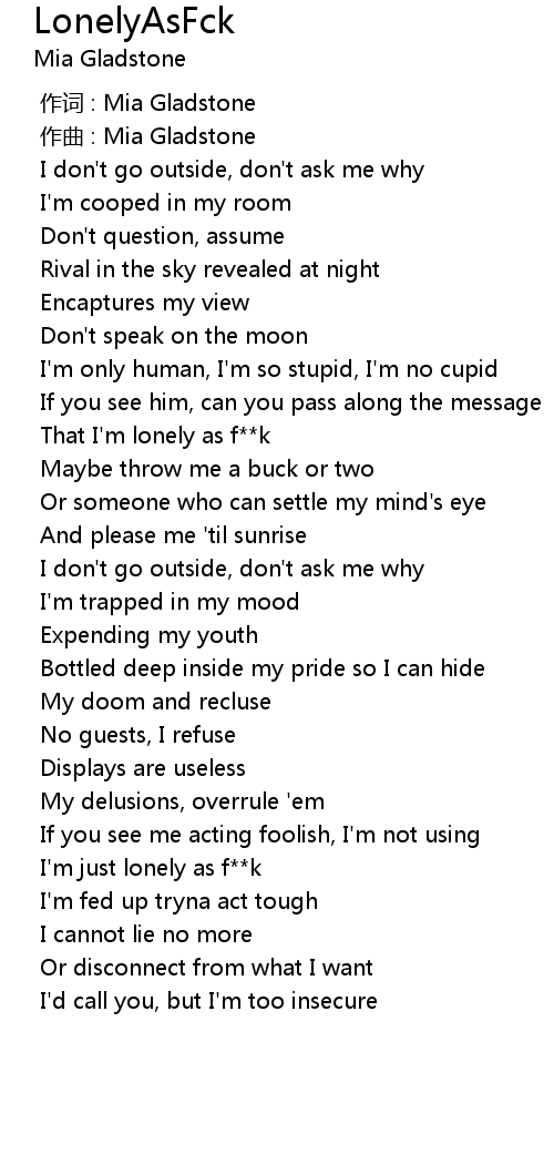 | [00:36.060] | That I' m lonely as f k |